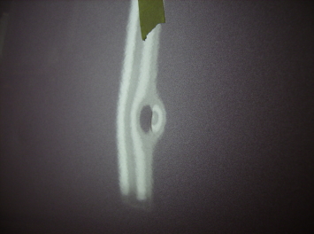 ぶつかった時の衝撃の強さや当たった物によって、深さやキズのつき方が変わります。