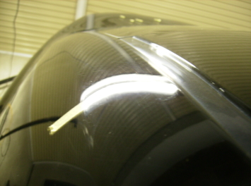 デントリペアは、通常デントツールでパネルの裏からヘコミを押して修復するのが基本